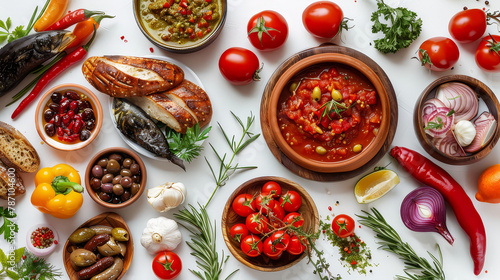 Realistic photo of international food. Creative artistic diplay of fresh ingredients. AI Generative spice.