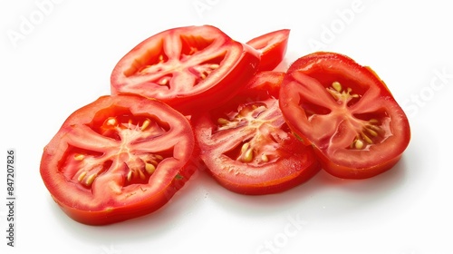 Realistic photo of sliced tomatoes on a white background