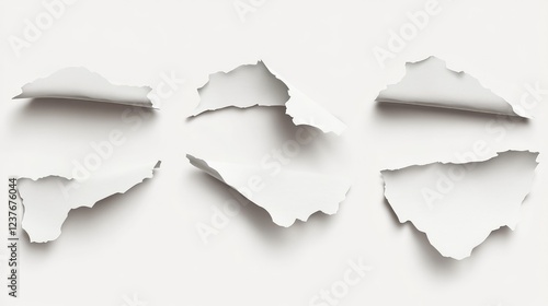 Realistic ripped paper elements with jagged edges, ideal for collage and scrapbooking effects.