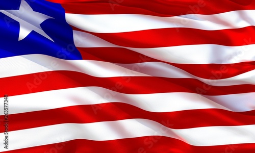 Realistic silk material Liberia waving flag, high quality detailed fabric texture. 3d illustration