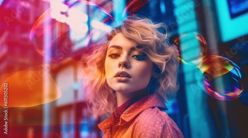 Realistic style woman in vibrant colors. Beautiful illustration picture. Generative AI
