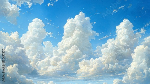 Realistic Summer Sky with Fluffy Clouds in Bright Blue Atmosphere