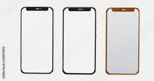 Realistic templates of modern smartphone. Vector phone mockup set.