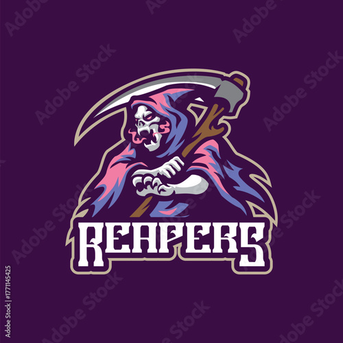Reapers mascot logo design vector. Angry reapers illustration with stick.