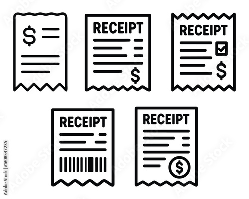 Receipts: Various receipts in a bold black and white, perfect for illustrating financial transactions and business concepts.