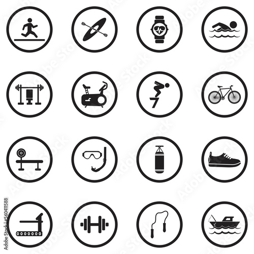 Recreation Icons. Black Flat Design In Circle. Vector Illustration.