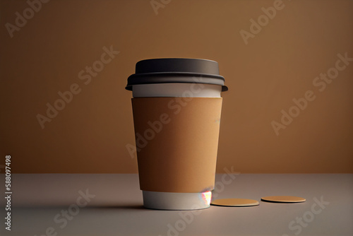 Recyclable cardboard cup balancing on a kraft cardboard background, AI Generated
