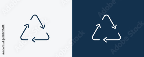 recycle arrows icon. Outline recycle arrows, recycle icon from ecology collection. Linear vector isolated on white and dark blue background. Editable recycle arrows symbol.