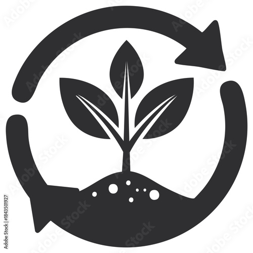 Recycle Symbol Featuring a Plant Growing From Soil. Sustainable Agriculture Concept Icon.