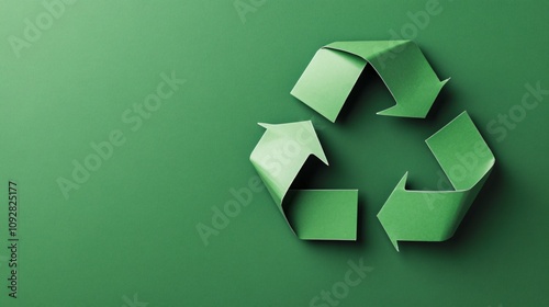 Recycle symbol made of folded green paper on a vibrant green background. Generative AI