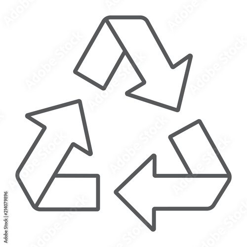 Recycle thin line icon, ecology and protection, environmental sign, vector graphics, a linear pattern on a white background, eps 10.