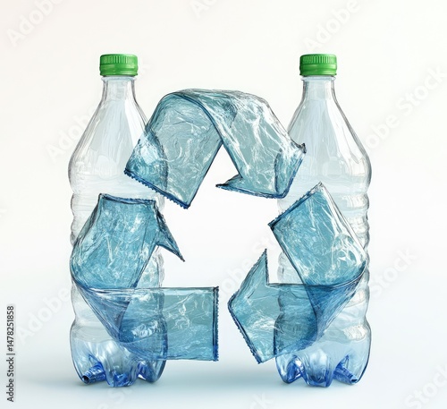 Recycled plastic bottles forming a recycling symbol