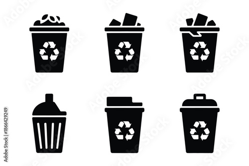 Recycling bin and waste management silhouette icons