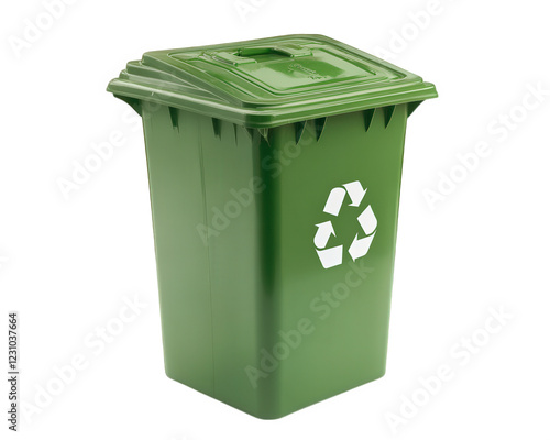 Recycling bin with sensor activated lid, designed for waste management. This eco friendly container promotes recycling and sustainability in urban environments