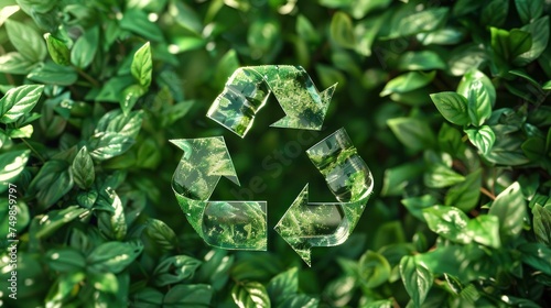 Recycling symbols integrated into swirling leaves and eco-friendly icons, illustrating environmental responsibility.