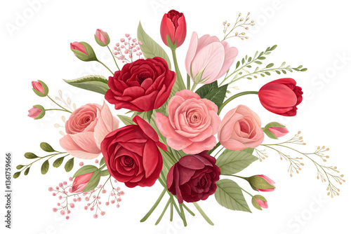 Red and Pink Flowers Isolated on White or Transparent PNG Background