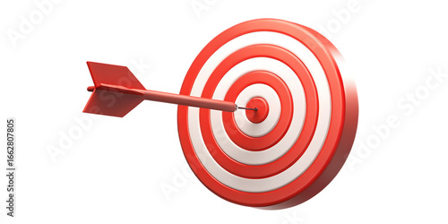 Red and White Dartboard with Arrow in Bullseye target isolated on a transparent background