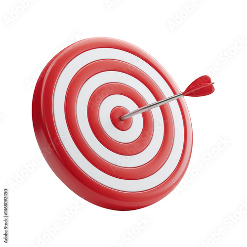 Red and white target bullseye with arrow hitting center 3d aim goal shot on transparent background