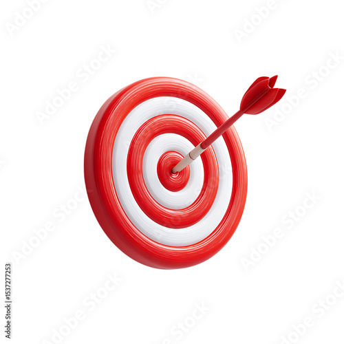 Red and white target with arrow in bullseye isolated on transparent background