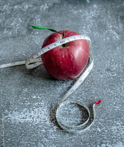 red apple for weight loss while dieting, centimeter measuring tape