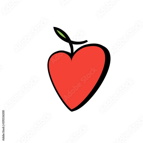 red apple with heart white background