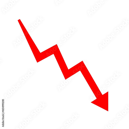 Red arrow indicating downward trend isolated on white background