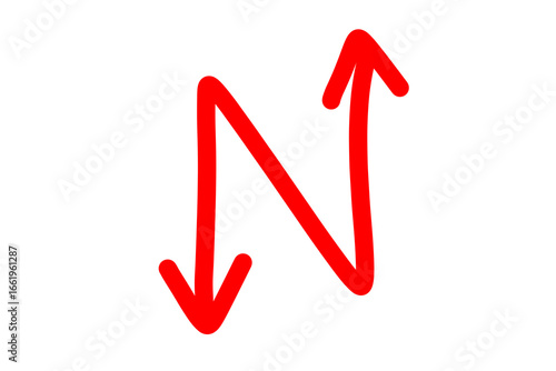 Red arrow pointing up and down. Both side two direction arrow hand drawn doodle. Hand drawn upward downward arrow isolated on transparent png