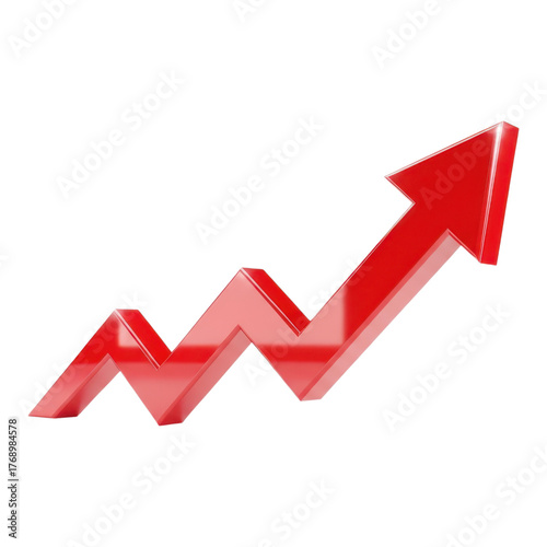 Red arrow pointing up isolated on transparent background, symbol of growth and success