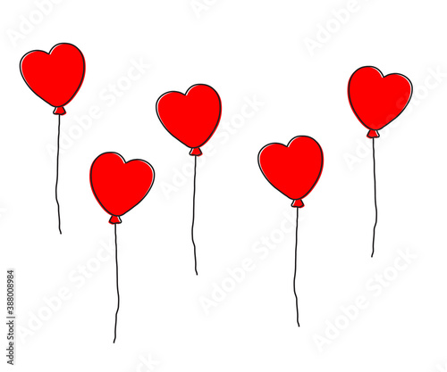 Red balloon in the shape of a heart. Cartoon. Vector illustration.