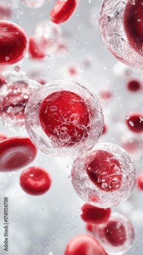 Red blood cells circulating in a clear fluid environment detailed view