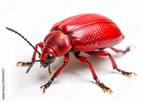 Red Bug Beetle Isolated on White, Detailed Macro Drone Photography