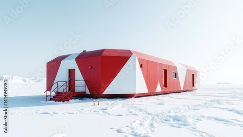 Red buildings on the snow