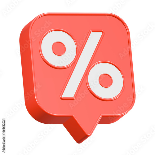 Red business 3D render illustration showing percent discount sign icon for a shop promotion