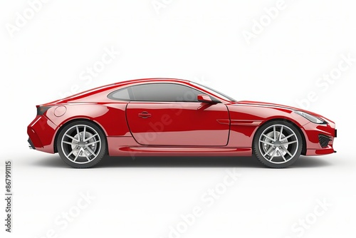 Red car isolated on white background, side view
