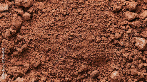 Red Clay Texture: A close-up shot of red clay soil, revealing its rich, earthy texture, highlighting the interplay of light and shadow, perfect for design projects or backgrounds.