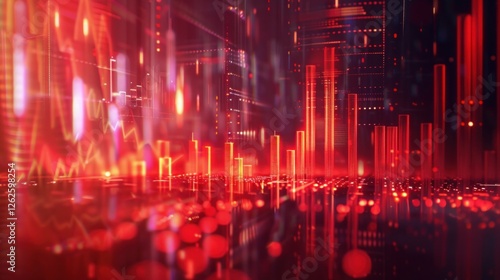 Red Digital Cityscape: A Futuristic Financial Market Visualization
