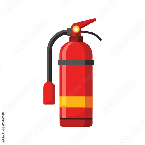 Red Fire Extinguisher Vector Illustration Black Hose Yellow Stripe Safety Equipment Graphic Design Element Isolated White Background