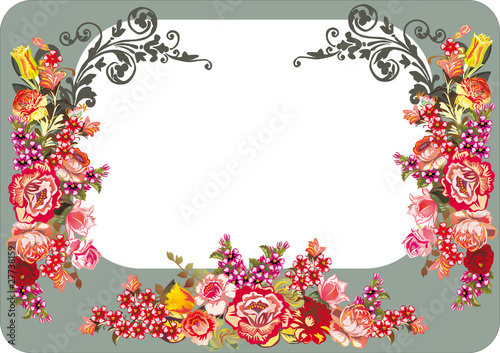 red floral frame on grey