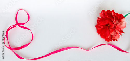 red flower, gift, ribbon, carnation, March 8, women's day
