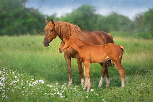 Red foal with mare