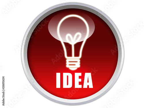 red glossy button with white bulb icon