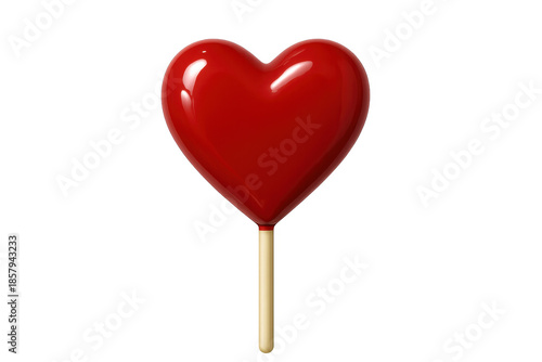 Red heart glossy candy lollipop celebrating valentine's day