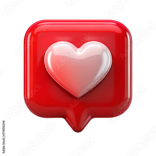 Red heart icon in a speech bubble isolated on transparent background