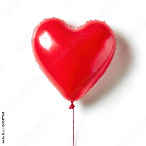 Red heart shaped balloon with string isolated on white background
