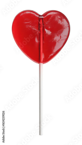 Red heart shaped lollipop on a white stick isolated on transparent background