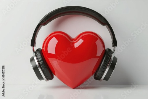 Red heart with headphones symbolizing love for music and audio experiences
