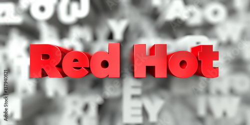 Red Hot - Red text on typography background - 3D rendered royalty free stock image. This image can be used for an online website banner ad or a print postcard.