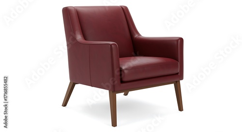 Red leather armchair with wooden legs on white background upholstery