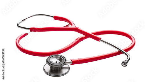 Red medical stethoscope, coiled