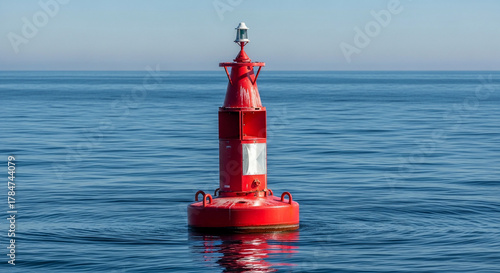 Red navigation buoy floating in the ocean providing guidance to mariners